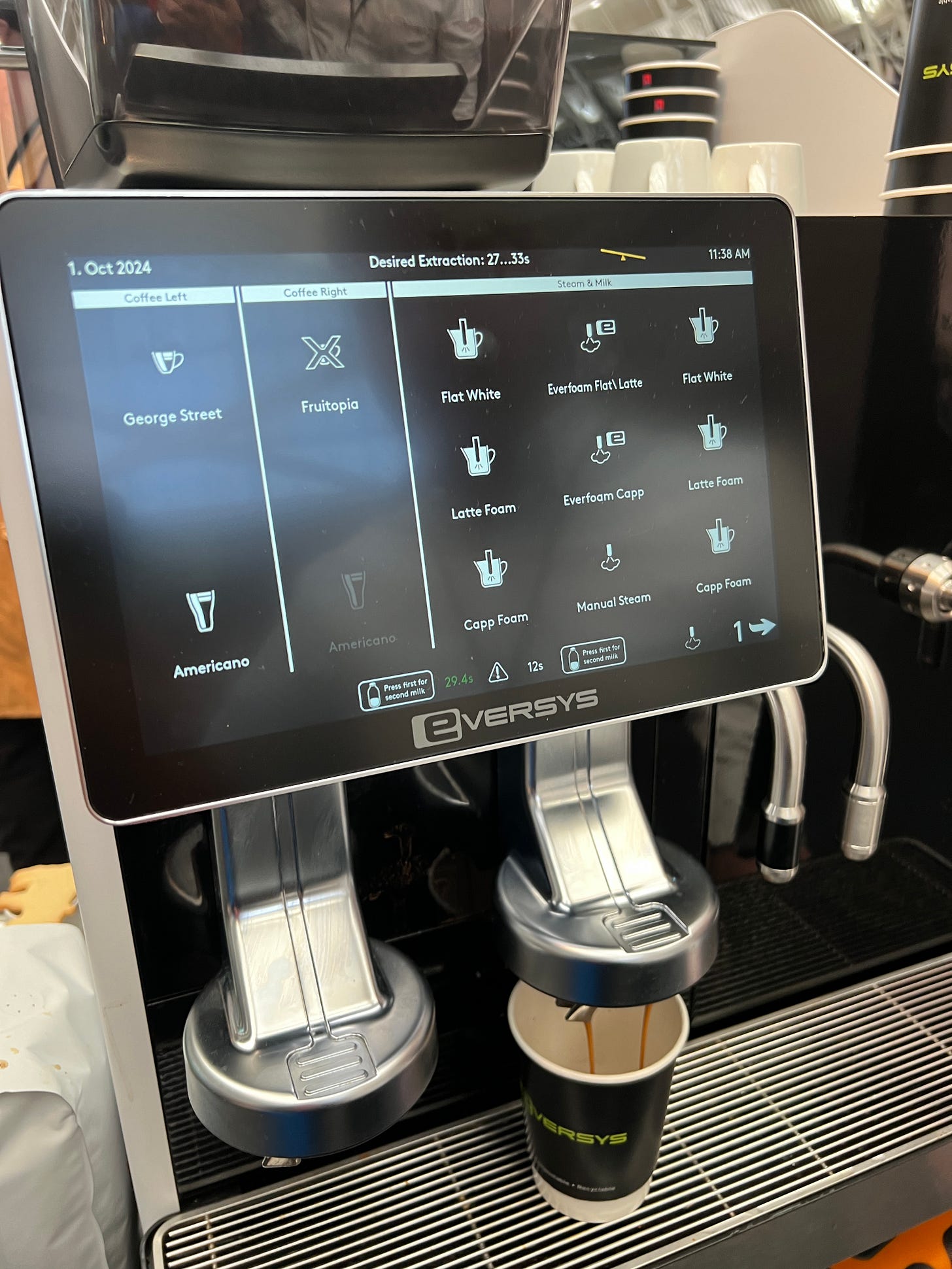 I’m particularly interested in the world of bean to cup technology at the moment and the Ferrari of the technology, machine maker - Eversys, a Swiss based company. Which had its own stall at the show. I was excited to have a demo on this machine.
